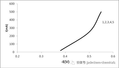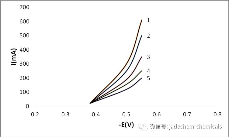 圖2.加整平劑(1×10-3mg/L)時的陰極極化曲線
