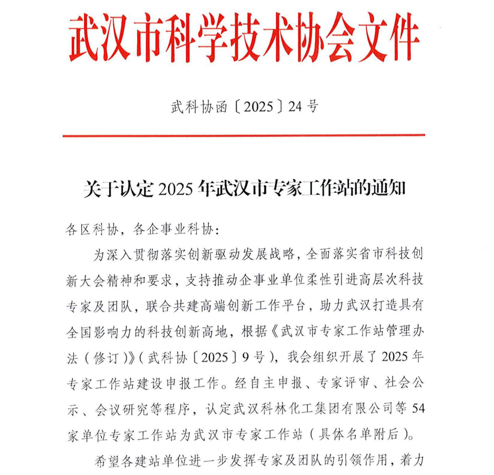 2025年7月23日,武漢市科學技術協會官網發布《關于認定2025年武漢市專家工作站的通知》,武漢奧克特種化學有限公司專家工作站成功入選,被正式認定為武漢市專家工作站。此次入選,標志著該公司在科技創新、產學研合作方面邁出了重要一步。