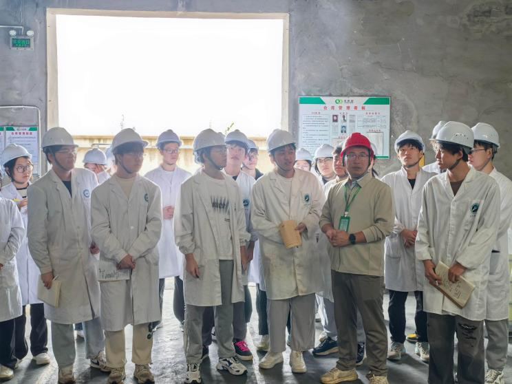 在滕總監的引導下,同學們分批次進入生產廠區進行實地參觀。大家近距離觀察了生產裝置、整潔規范的作業流程,詳細了解了產品從原料投入到成品產出的全過程。