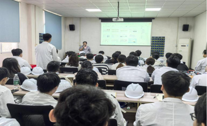 實習當天,湖北吉和昌化工科技有限公司生產總監滕金梁通過生動的宣講向同學們展示了公司的發展歷程、核心業務、主營產品以及在行業內的地位。同學們認真聆聽,對公司有了初步而深刻的印象,也對接下來的現場參觀充滿了期待。
