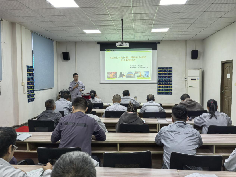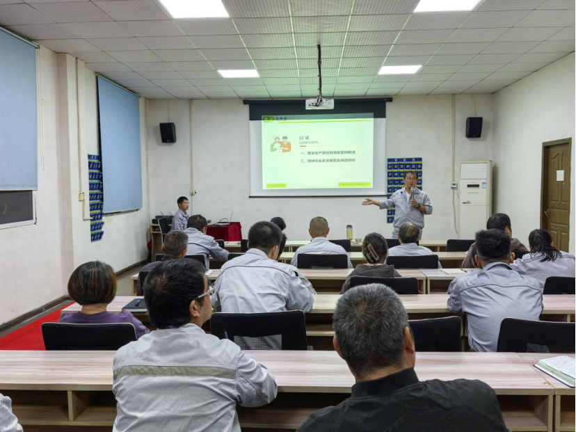 湖北吉和昌化工科技有限公司于2025年9月23日晚18點,在公司二樓會議室舉辦了一場安全生產責任制及特殊作業安全規范的培訓。此次培訓由安全儲備總監周文杰授課,全體員工齊聚一堂,認真傾聽學習。