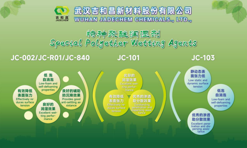 本次展會我們將重點推出炔醇聚醚和特種聚醚產品,即JC-002/JC-R01/JC-840/JC-101/JC-103等